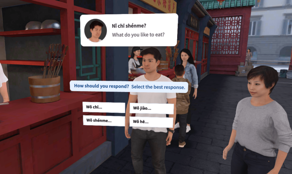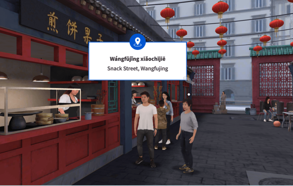 I also really enjoyed the Immersive Experiences, which you can do on a desktop or using a VR headset. You enter a digital version of Wangfujing Market in Beijing, and navigate around the market carrying out various challenges: a scavenger hunt, ordering food, and carrying out a conversation. Each of these activities corresponds with the content of the unit in which it’s embedded. As part of the immersive experience, you have to listen and repeat words or phrases, and it evaluates your pronunciation, (though the criteria for evaluation are unclear).