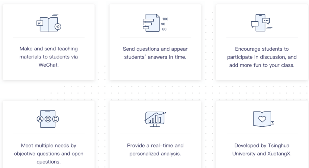 I learned how to use Rain Classroom for a large online seminar I delivered last week, so I have only used it for synchronous online teaching. It has a mobile app and web-based versions, as well as a desktop app. All are available in English. It interfaces with WeChat, to make signing up, and signing in much easier for both teachers and students. As literally every single person in China has a WeChat account, there’s no need to create a new account, login, etc.