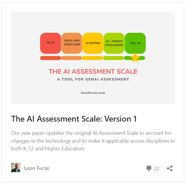 Back in October I wrote about my experimentation with the Academic Integrity Assessment Scale (Perkins et al., 2024) in the Chinese university English teaching context. I think it’s a great tool, and continue to use it in my teaching this semester with undergraduates and graduate students in language classes as well as a CLIL-based course in intercultural communication.