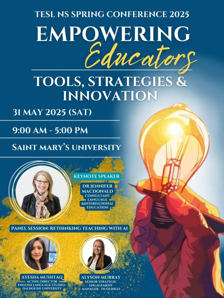 I’m delivering the keynote address at the upcoming TESL Nova Scotia conference this weekend.